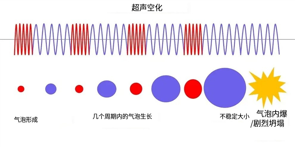 Su mecanismo central es consistente con el 'efecto de cavitación acústica' mencionado anteriormente, pero los objetivos de la aplicación son diferentes: